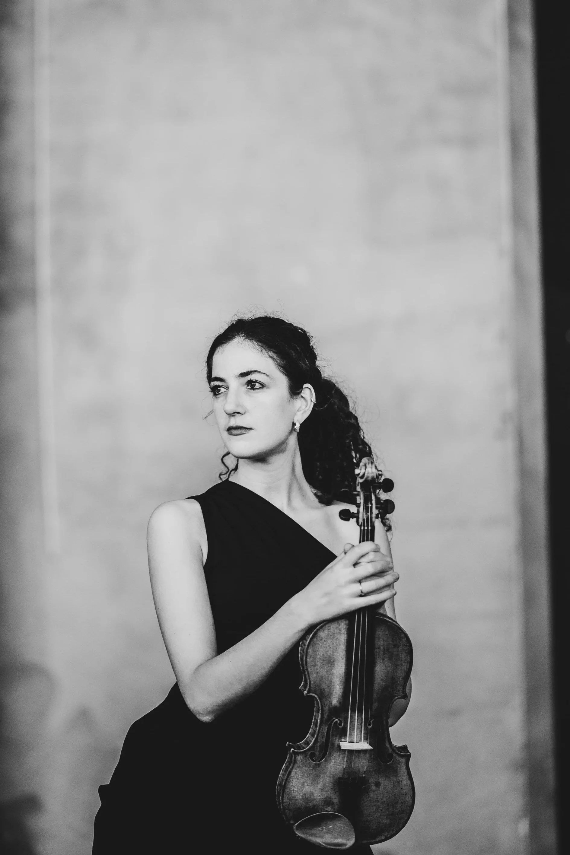 She performs on a J.B. Vuillaume violin, generously loaned by Florian Leonhard Fine Violins, and is grateful for the support of the DOMS Stiftung, Stiftung Pirolo, Stiftung Melinda Esterházy de Galantha, and the Musik-Akademie Basel.